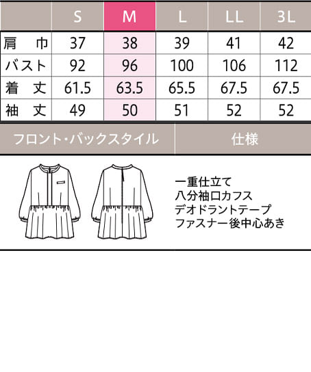 | 着丈 | 61.5 | 63.5 | 65.5 | 67.5 | 67.5 |