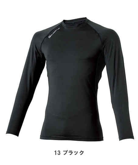 接触冷感のドライパワーサポート長袖インナー。首元と脇のメッシュにキシリトールプリントを施し、吸熱反応で涼感を持続。春夏の快適作業に最適です。