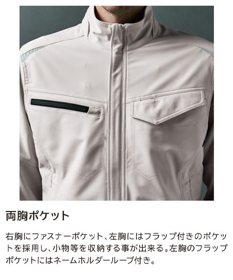 ドライテックトリコ…1見、布帛に見える「ドライテックトリコ」は、編み(ニット)組織によるしなやかさとソフトな着心地を実現し、全方位に伸びるストレッチ性が柔軟性を求められるワークシーンで活躍する。また着用による擦れ、当たり、白化のリスクを軽減する。導電繊維を混入させており、静電気をケア。